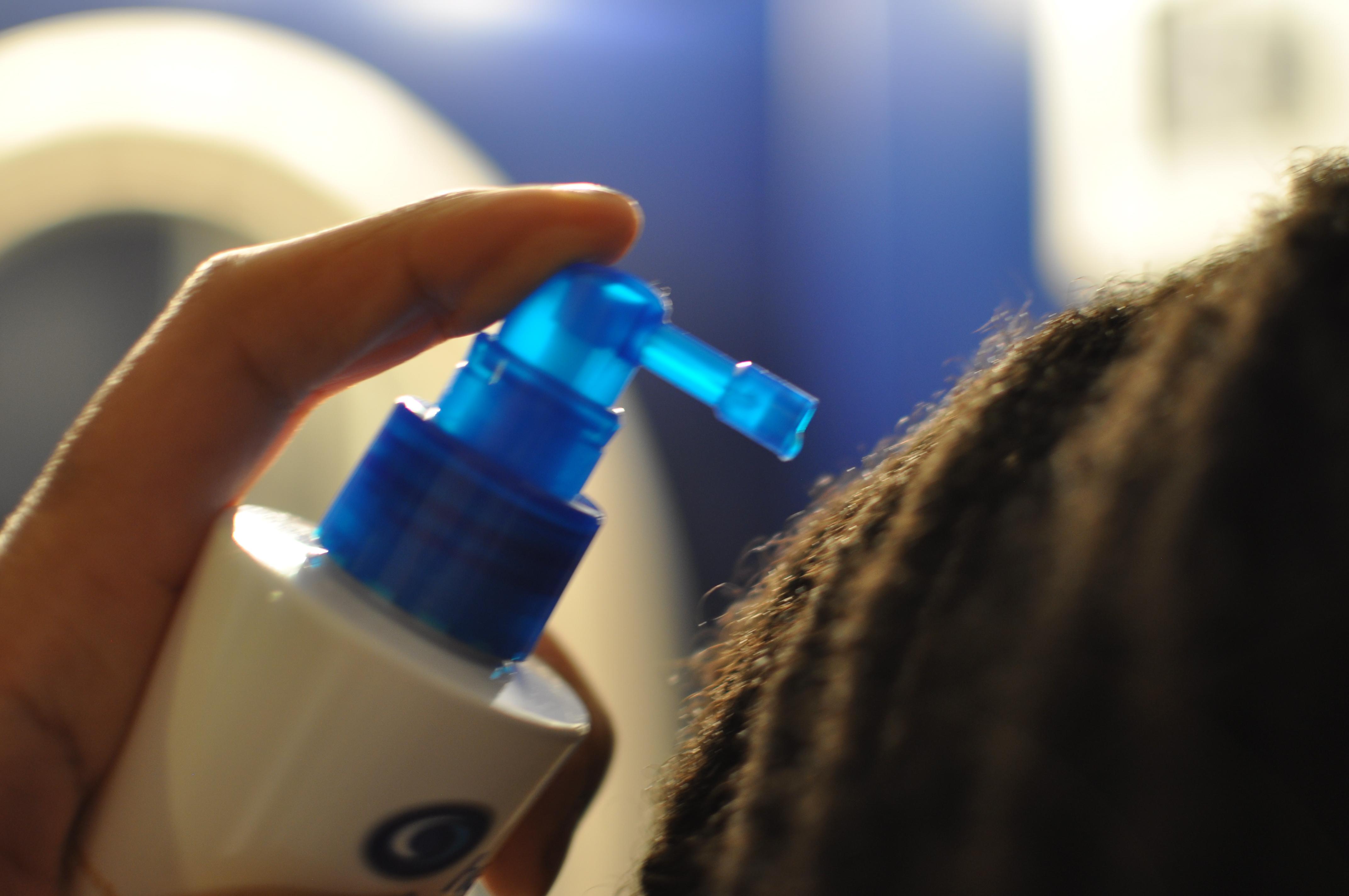 - Apply directly to the scalp by spraying 15 pumps at the roots
