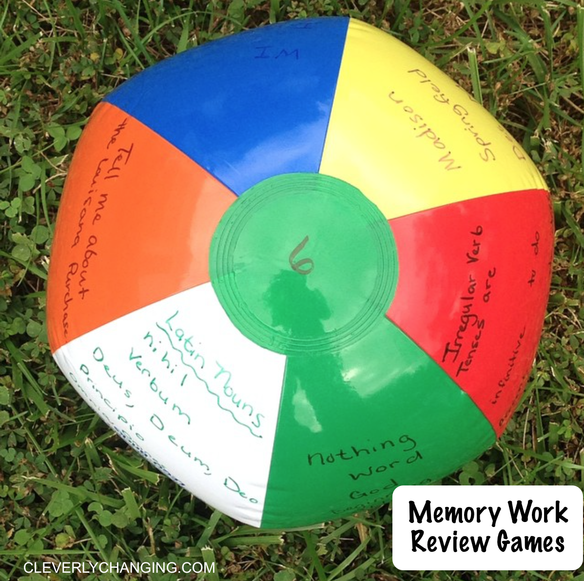 - Beach Ball Review Game / Hover Ball Review Game – This is fun for kinesthetic learners who learn best when doing something. Throwing a ball around from student-to-student is more play then work so kids just think we are playing ball. I recommend the crayola dry erase markers or washable markers to write your questions on the ball.