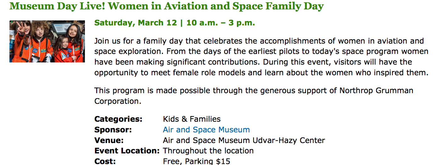 Over 500 museums across the country are having special Museum Day Live events Sat., March 12, 2016. March is officially Women’s History Month so many of the activities are especially geared towards females. We love museums because they help foster imagination, expression, wonder, history, innovation, creativity, and more. Some of our favorite family memories have been made at local museums. Museums are some of our favorite field trips. So read on and learn about some of the museum programs going on in the Washington DC area.