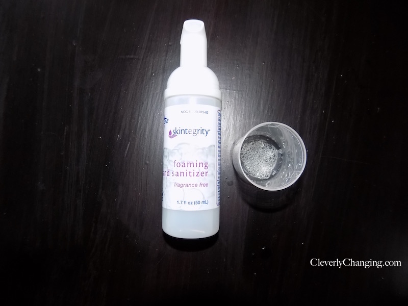 • Medline Skintegrity Foaming Hand Sanitizer – Foam sanitizer that goes on clear. Comes in a small bottle so it will fit in a purse or backpack easily. The official size is about 50.30 ML. Works well. Doesn’t dry-out your skin after several applications.