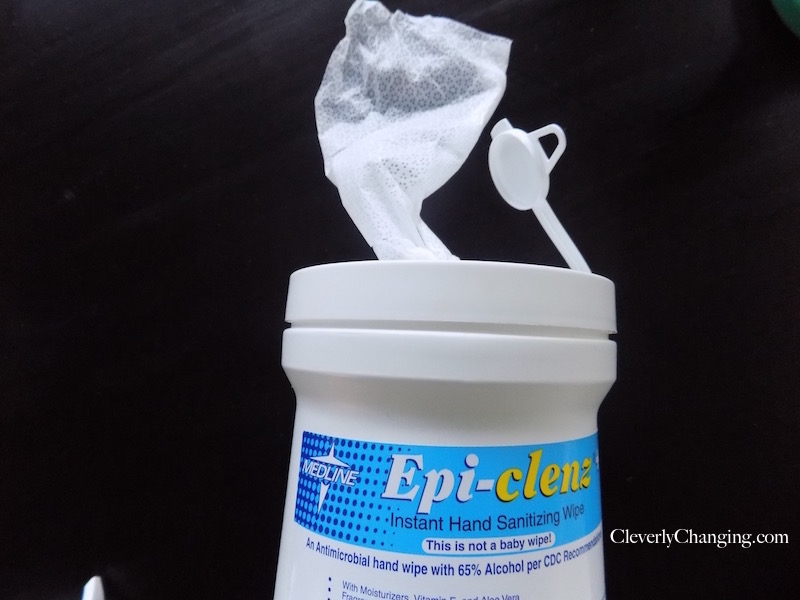 • Medline Epi- Clenz Hand Sanitizer Wipes – Comes in a 160 count container. Great for use in the car; especially after a long evening on the playground. The wipes are thin but effectively reduce the amount of germs that are on a person’s hands.