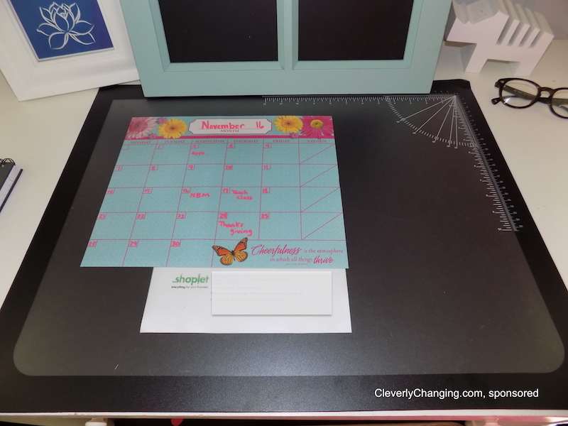 Everyone wants a cute stylish office that functions well and helps us feel at ease while working. However, if you have a home office and small children it can be hard to find products that accommodate your need for function and durability. The Artistic Desktop Organizer with Clear Overlay is a product that helps secure the items on your desk so they can be visible but unharmed. The logo pad I received from Shoplet.com is perfect because it is a solid color: black, which makes it versatile aesthetically. It is also very practical.
